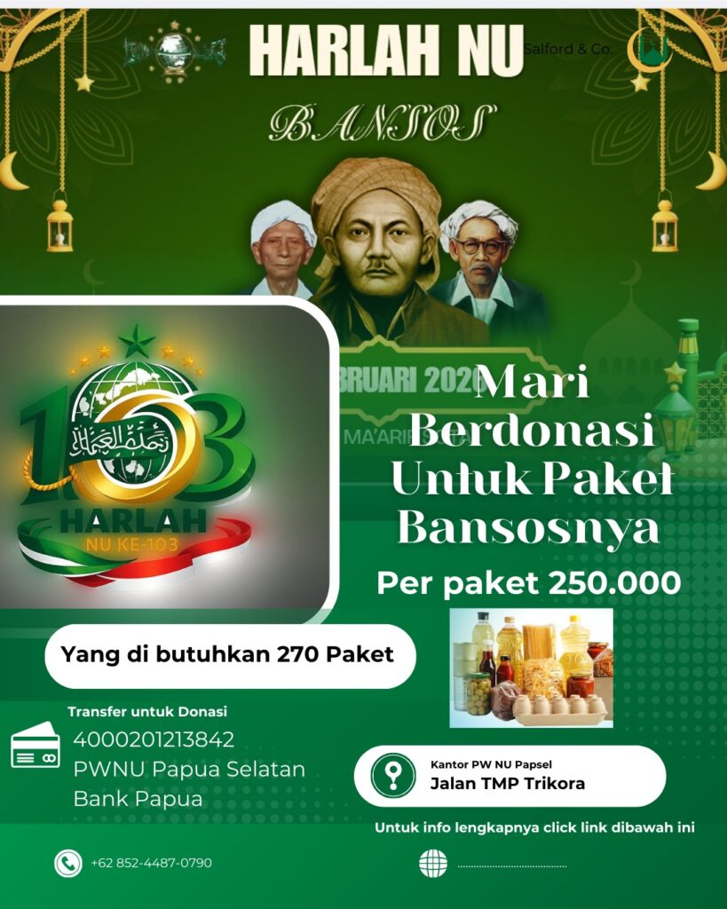 Diharapkan partisipasinya poro Yai dan Nyai & warga Nahdliyin untuk mendukung program tersebut dengan bersedekah Per Paket Rp.250.000,-